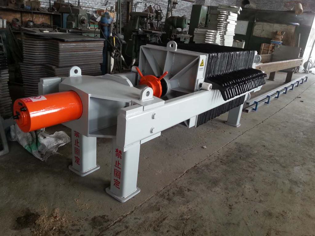 870壓濾機由多個濾板和濾架交替排列組成,它代表了板框式壓濾機的整體裝置以及濾板和濾框的結(jié)構(gòu)。每臺機器使用的濾板和濾架數(shù)量取決于過濾器的生產(chǎn)能力和濾漿的狀況。如果生產(chǎn)能力更大或濾漿中的固體含量更大,則板和框架的數(shù)量也需要更多。870壓濾機組裝時,板框交錯布置,板框用螺釘壓緊,防止運行時濾液從縫隙中滲出